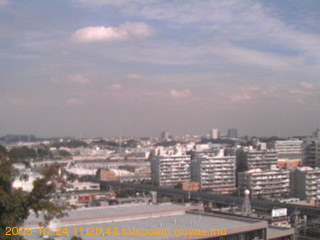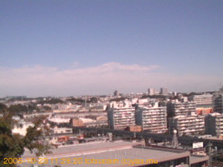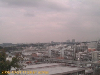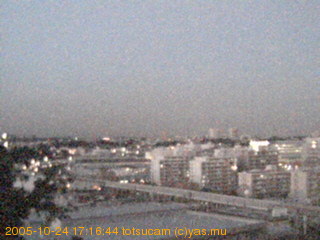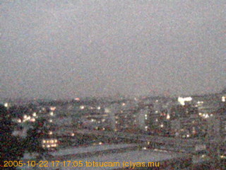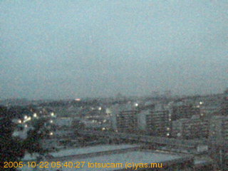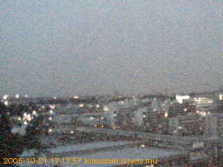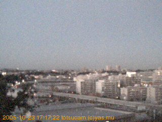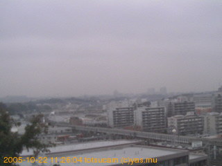 適度に曇った日の雲の動き (例: 2005-10-24) がとても楽しめます。 正面を横切っている高架は横須賀線下りです。 その下に横須賀線上り、東海道線、同貨物線が走っていますが、 高架に隠れていてよく見えません。 夜間は特に中央左寄りの車の動きがよく見えます。
