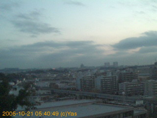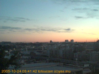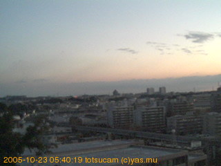横浜市戸塚駅周辺から 東戸塚方面(北北東)を望む展望カメラの映像です。 左は現在の映像です。 下に並んでいるのは、 7日間に亘る日の出どき、昼間、夕暮れどきの写真(サムネイル)です。 それぞれ、日の出15分前、南中時、日没20分後の写真となっています。 各写真の下にはmpeg形式の動画へのリンクがあります。 それぞれ、日の出、南中、日没の前後1時間の画像です。 右欄にはその日24時間の動画へのリンクがあります。 この7日間以外は日付が一覧表示されています。 日付部分をクリックすると、 その日付から7日分が展開されて表示されます。