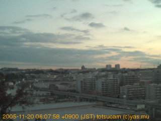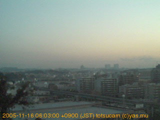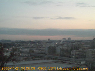 横浜市戸塚駅周辺から 東戸塚方面(北北東)を望む展望カメラの映像です。 左は現在の映像です。 下に並んでいるのは、 7日間に亘る日の出どき、昼間、夕暮れどきの写真(サムネイル)です。 それぞれ、日の出15分前、南中時、日没20分後の写真となっています。 各写真の下にはmpeg形式の動画へのリンクがあります。 それぞれ、日の出、南中、日没の前後1時間の画像です。 右欄にはその日24時間の動画へのリンクがあります。 この7日間以外は日付が一覧表示されています。 日付部分をクリックすると、 その日付から7日分が展開されて表示されます。
