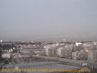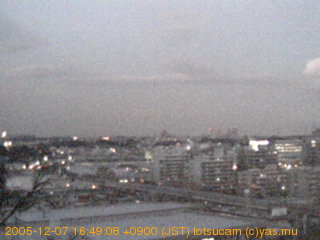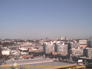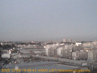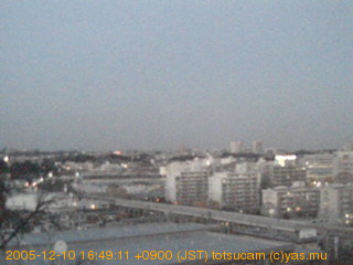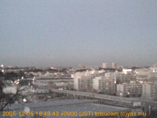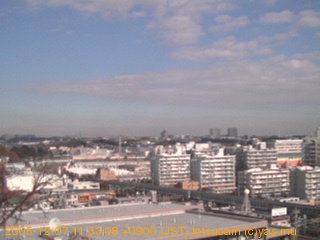 適度に曇った日の雲の動き (例: 2005-10-24) がとても楽しめます。 正面を横切っている高架は横須賀線下りです。 その下に横須賀線上り、東海道線、同貨物線が走っていますが、 高架に隠れていてよく見えません。 夜間は特に中央左寄りの車の動きがよく見えます。