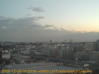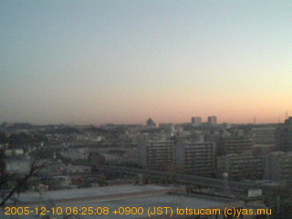 横浜市戸塚駅周辺から 東戸塚方面(北北東)を望む展望カメラの映像です。 左は現在の映像です。 下に並んでいるのは、 7日間に亘る日の出どき、昼間、夕暮れどきの写真(サムネイル)です。 それぞれ、日の出15分前、南中時、日没20分後の写真となっています。 各写真の下にはmpeg形式の動画へのリンクがあります。 それぞれ、日の出、南中、日没の前後1時間の画像です。 右欄にはその日24時間の動画へのリンクがあります。 この7日間以外は日付が一覧表示されています。 日付部分をクリックすると、 その日付から7日分が展開されて表示されます。