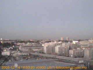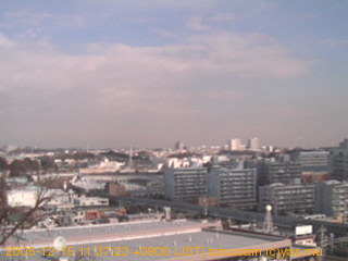 適度に曇った日の雲の動き (例: 2005-10-24) がとても楽しめます。 正面を横切っている高架は横須賀線下りです。 その下に横須賀線上り、東海道線、同貨物線が走っていますが、 高架に隠れていてよく見えません。 夜間は特に中央左寄りの車の動きがよく見えます。