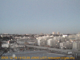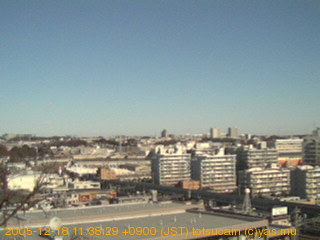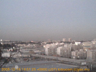 適度に曇った日の雲の動き (例: 2005-10-24) がとても楽しめます。 正面を横切っている高架は横須賀線下りです。 その下に横須賀線上り、東海道線、同貨物線が走っていますが、 高架に隠れていてよく見えません。 夜間は特に中央左寄りの車の動きがよく見えます。