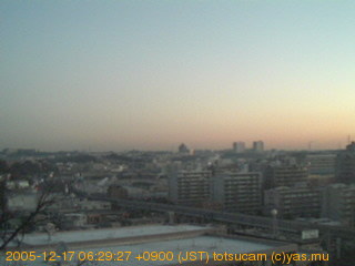 横浜市戸塚駅周辺から 東戸塚方面(北北東)を望む展望カメラの映像です。 左は現在の映像です。 下に並んでいるのは、 7日間に亘る日の出どき、昼間、夕暮れどきの写真(サムネイル)です。 それぞれ、日の出15分前、南中時、日没20分後の写真となっています。 各写真の下にはmpeg形式の動画へのリンクがあります。 それぞれ、日の出、南中、日没の前後1時間の画像です。 右欄にはその日24時間の動画へのリンクがあります。 この7日間以外は日付が一覧表示されています。 日付部分をクリックすると、 その日付から7日分が展開されて表示されます。