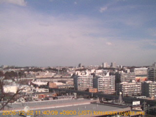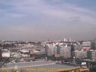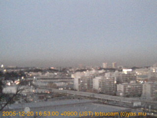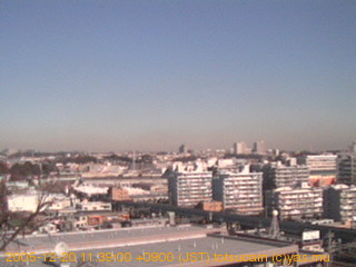 適度に曇った日の雲の動き (例: 2005-10-24) がとても楽しめます。 正面を横切っている高架は横須賀線下りです。 その下に横須賀線上り、東海道線、同貨物線が走っていますが、 高架に隠れていてよく見えません。 夜間は特に中央左寄りの車の動きがよく見えます。