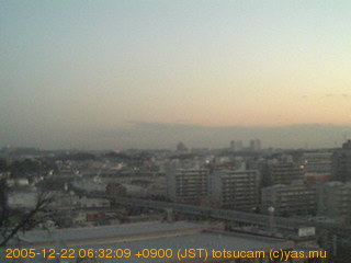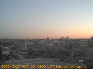 横浜市戸塚駅周辺から 東戸塚方面(北北東)を望む展望カメラの映像です。 左は現在の映像です。 下に並んでいるのは、 7日間に亘る日の出どき、昼間、夕暮れどきの写真(サムネイル)です。 それぞれ、日の出15分前、南中時、日没20分後の写真となっています。 各写真の下にはmpeg形式の動画へのリンクがあります。 それぞれ、日の出、南中、日没の前後1時間の画像です。 右欄にはその日24時間の動画へのリンクがあります。 この7日間以外は日付が一覧表示されています。 日付部分をクリックすると、 その日付から7日分が展開されて表示されます。