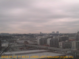 適度に曇った日の雲の動き (例: 2005-10-24) がとても楽しめます。 正面を横切っている高架は横須賀線下りです。 その下に横須賀線上り、東海道線、同貨物線が走っていますが、 高架に隠れていてよく見えません。 夜間は特に中央左寄りの車の動きがよく見えます。