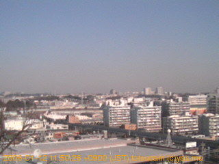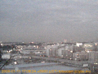 適度に曇った日の雲の動き (例: 2005-10-24) がとても楽しめます。 正面を横切っている高架は横須賀線下りです。 その下に横須賀線上り、東海道線、同貨物線が走っていますが、 高架に隠れていてよく見えません。 夜間は特に中央左寄りの車の動きがよく見えます。