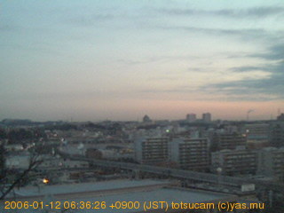横浜市戸塚駅周辺から 東戸塚方面(北北東)を望む展望カメラの映像です。 左は現在の映像です。 下に並んでいるのは、 7日間に亘る日の出どき、昼間、夕暮れどきの写真(サムネイル)です。 それぞれ、日の出15分前、南中時、日没20分後の写真となっています。 各写真の下にはmpeg形式の動画へのリンクがあります。 それぞれ、日の出、南中、日没の前後1時間の画像です。 右欄にはその日24時間の動画へのリンクがあります。 この7日間以外は日付が一覧表示されています。 日付部分をクリックすると、 その日付から7日分が展開されて表示されます。