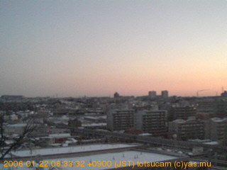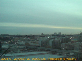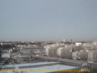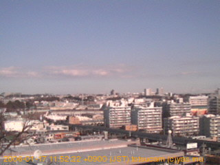 横浜市戸塚駅周辺から 東戸塚方面(北北東)を望む展望カメラの映像です。 左は現在の映像です。 下に並んでいるのは、 7日間に亘る日の出どき、昼間、夕暮れどきの写真(サムネイル)です。 それぞれ、日の出15分前、南中時、日没20分後の写真となっています。 各写真の下にはmpeg形式の動画へのリンクがあります。 それぞれ、日の出、南中、日没の前後1時間の画像です。 右欄にはその日24時間の動画へのリンクがあります。 この7日間以外は日付が一覧表示されています。 日付部分をクリックすると、 その日付から7日分が展開されて表示されます。