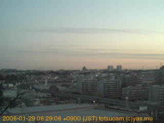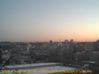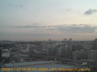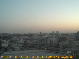 横浜市戸塚駅周辺から 東戸塚方面(北北東)を望む展望カメラの映像です。 左は現在の映像です。 下に並んでいるのは、 7日間に亘る日の出どき、昼間、夕暮れどきの写真(サムネイル)です。 それぞれ、日の出15分前、南中時、日没20分後の写真となっています。 各写真の下にはmpeg形式の動画へのリンクがあります。 それぞれ、日の出、南中、日没の前後1時間の画像です。 右欄にはその日24時間の動画へのリンクがあります。 この7日間以外は日付が一覧表示されています。 日付部分をクリックすると、 その日付から7日分が展開されて表示されます。