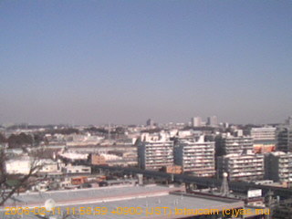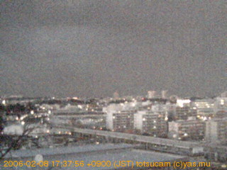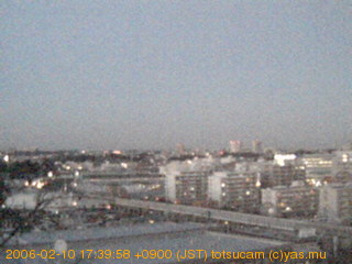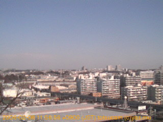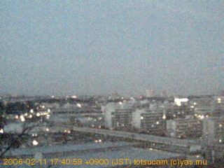 適度に曇った日の雲の動き (例: 2005-10-24) がとても楽しめます。 正面を横切っている高架は横須賀線下りです。 その下に横須賀線上り、東海道線、同貨物線が走っていますが、 高架に隠れていてよく見えません。 夜間は特に中央左寄りの車の動きがよく見えます。