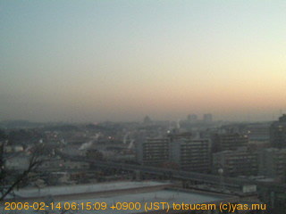 横浜市戸塚駅周辺から 東戸塚方面(北北東)を望む展望カメラの映像です。 左は現在の映像です。 下に並んでいるのは、 7日間に亘る日の出どき、昼間、夕暮れどきの写真(サムネイル)です。 それぞれ、日の出15分前、南中時、日没20分後の写真となっています。 各写真の下にはmpeg形式の動画へのリンクがあります。 それぞれ、日の出、南中、日没の前後1時間の画像です。 右欄にはその日24時間の動画へのリンクがあります。 この7日間以外は日付が一覧表示されています。 日付部分をクリックすると、 その日付から7日分が展開されて表示されます。