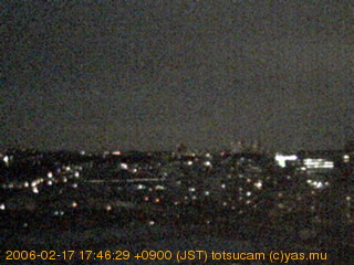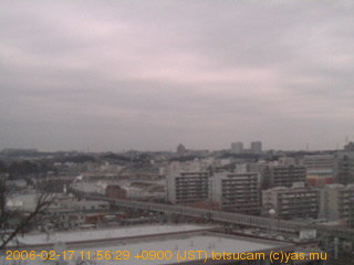 適度に曇った日の雲の動き (例: 2005-10-24) がとても楽しめます。 正面を横切っている高架は横須賀線下りです。 その下に横須賀線上り、東海道線、同貨物線が走っていますが、 高架に隠れていてよく見えません。 夜間は特に中央左寄りの車の動きがよく見えます。