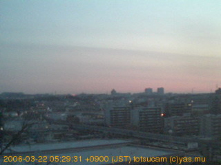 横浜市戸塚駅周辺から 東戸塚方面(北北東)を望む展望カメラの映像です。 左は現在の映像です。 下に並んでいるのは、 7日間に亘る日の出どき、昼間、夕暮れどきの写真(サムネイル)です。 それぞれ、日の出15分前、南中時、日没20分後の写真となっています。 各写真の下にはmpeg形式の動画へのリンクがあります。 それぞれ、日の出、南中、日没の前後1時間の画像です。 右欄にはその日24時間の動画へのリンクがあります。 この7日間以外は日付が一覧表示されています。 日付部分をクリックすると、 その日付から7日分が展開されて表示されます。