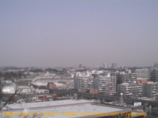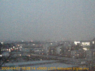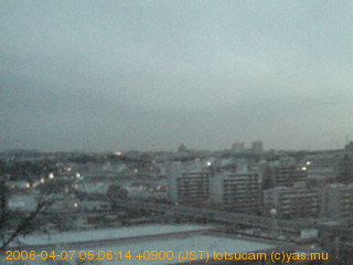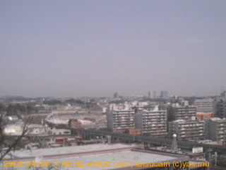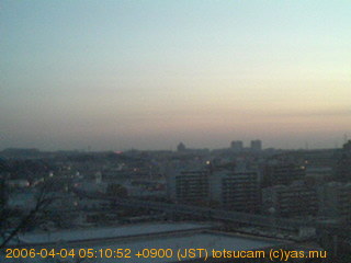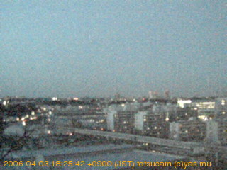 適度に曇った日の雲の動き (例: 2005-10-24) がとても楽しめます。 正面を横切っている高架は横須賀線下りです。 その下に横須賀線上り、東海道線、同貨物線が走っていますが、 高架に隠れていてよく見えません。 夜間は特に中央左寄りの車の動きがよく見えます。