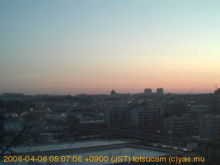 横浜市戸塚駅周辺から 東戸塚方面(北北東)を望む展望カメラの映像です。 左は現在の映像です。 下に並んでいるのは、 7日間に亘る日の出どき、昼間、夕暮れどきの写真(サムネイル)です。 それぞれ、日の出15分前、南中時、日没20分後の写真となっています。 各写真の下にはmpeg形式の動画へのリンクがあります。 それぞれ、日の出、南中、日没の前後1時間の画像です。 右欄にはその日24時間の動画へのリンクがあります。 この7日間以外は日付が一覧表示されています。 日付部分をクリックすると、 その日付から7日分が展開されて表示されます。