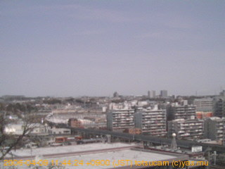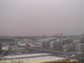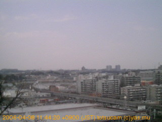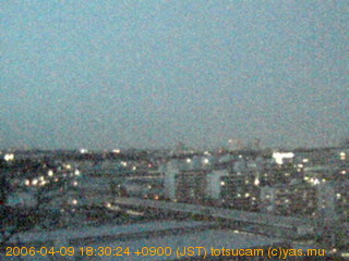 適度に曇った日の雲の動き (例: 2005-10-24) がとても楽しめます。 正面を横切っている高架は横須賀線下りです。 その下に横須賀線上り、東海道線、同貨物線が走っていますが、 高架に隠れていてよく見えません。 夜間は特に中央左寄りの車の動きがよく見えます。