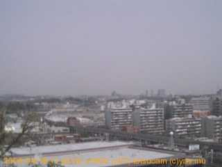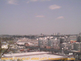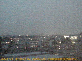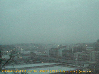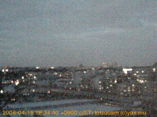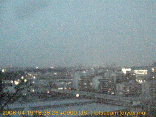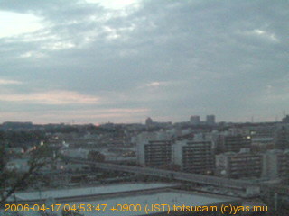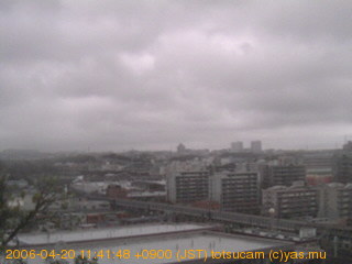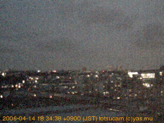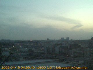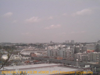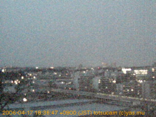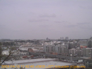 適度に曇った日の雲の動き (例: 2005-10-24) がとても楽しめます。 正面を横切っている高架は横須賀線下りです。 その下に横須賀線上り、東海道線、同貨物線が走っていますが、 高架に隠れていてよく見えません。 夜間は特に中央左寄りの車の動きがよく見えます。