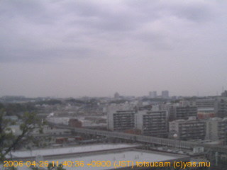 適度に曇った日の雲の動き (例: 2005-10-24) がとても楽しめます。 正面を横切っている高架は横須賀線下りです。 その下に横須賀線上り、東海道線、同貨物線が走っていますが、 高架に隠れていてよく見えません。 夜間は特に中央左寄りの車の動きがよく見えます。