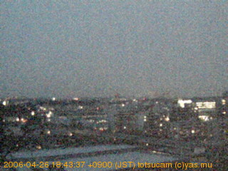 横浜市戸塚駅周辺から 東戸塚方面(北北東)を望む展望カメラの映像です。 左は現在の映像です。 下に並んでいるのは、 7日間に亘る日の出どき、昼間、夕暮れどきの写真(サムネイル)です。 それぞれ、日の出15分前、南中時、日没20分後の写真となっています。 各写真の下にはmpeg形式の動画へのリンクがあります。 それぞれ、日の出、南中、日没の前後1時間の画像です。 右欄にはその日24時間の動画へのリンクがあります。 この7日間以外は日付が一覧表示されています。 日付部分をクリックすると、 その日付から7日分が展開されて表示されます。