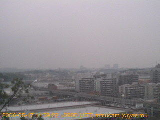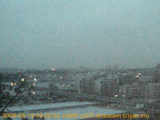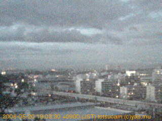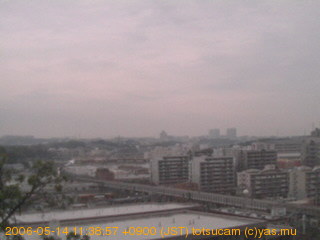 適度に曇った日の雲の動き (例: 2005-10-24) がとても楽しめます。 正面を横切っている高架は横須賀線下りです。 その下に横須賀線上り、東海道線、同貨物線が走っていますが、 高架に隠れていてよく見えません。 夜間は特に中央左寄りの車の動きがよく見えます。