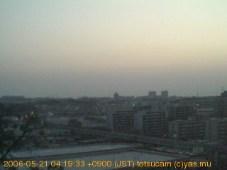 横浜市戸塚駅周辺から 東戸塚方面(北北東)を望む展望カメラの映像です。 左は現在の映像です。 下に並んでいるのは、 7日間に亘る日の出どき、昼間、夕暮れどきの写真(サムネイル)です。 それぞれ、日の出15分前、南中時、日没20分後の写真となっています。 各写真の下にはmpeg形式の動画へのリンクがあります。 それぞれ、日の出、南中、日没の前後1時間の画像です。 右欄にはその日24時間の動画へのリンクがあります。 この7日間以外は日付が一覧表示されています。 日付部分をクリックすると、 その日付から7日分が展開されて表示されます。