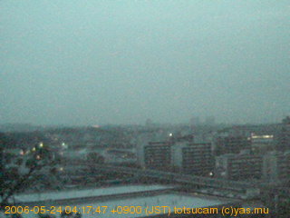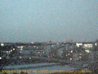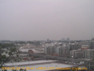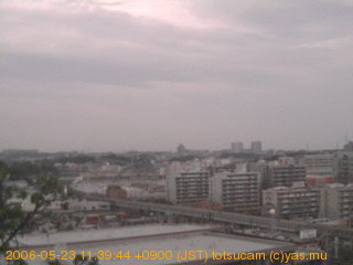 適度に曇った日の雲の動き (例: 2005-10-24) がとても楽しめます。 正面を横切っている高架は横須賀線下りです。 その下に横須賀線上り、東海道線、同貨物線が走っていますが、 高架に隠れていてよく見えません。 夜間は特に中央左寄りの車の動きがよく見えます。
