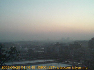 横浜市戸塚駅周辺から 東戸塚方面(北北東)を望む展望カメラの映像です。 左は現在の映像です。 下に並んでいるのは、 7日間に亘る日の出どき、昼間、夕暮れどきの写真(サムネイル)です。 それぞれ、日の出15分前、南中時、日没20分後の写真となっています。 各写真の下にはmpeg形式の動画へのリンクがあります。 それぞれ、日の出、南中、日没の前後1時間の画像です。 右欄にはその日24時間の動画へのリンクがあります。 この7日間以外は日付が一覧表示されています。 日付部分をクリックすると、 その日付から7日分が展開されて表示されます。