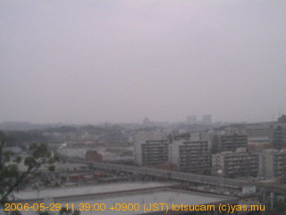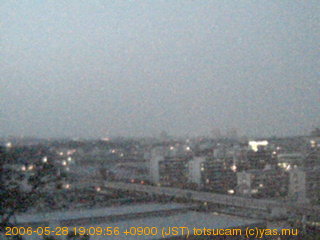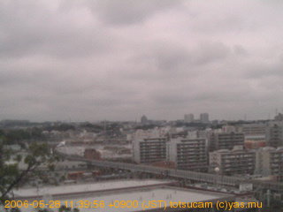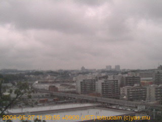 適度に曇った日の雲の動き (例: 2005-10-24) がとても楽しめます。 正面を横切っている高架は横須賀線下りです。 その下に横須賀線上り、東海道線、同貨物線が走っていますが、 高架に隠れていてよく見えません。 夜間は特に中央左寄りの車の動きがよく見えます。