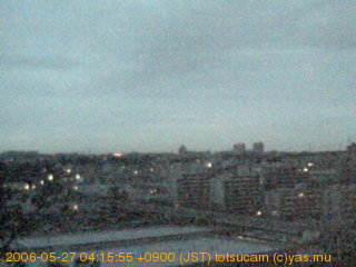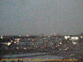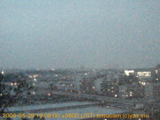 横浜市戸塚駅周辺から 東戸塚方面(北北東)を望む展望カメラの映像です。 左は現在の映像です。 下に並んでいるのは、 7日間に亘る日の出どき、昼間、夕暮れどきの写真(サムネイル)です。 それぞれ、日の出15分前、南中時、日没20分後の写真となっています。 各写真の下にはmpeg形式の動画へのリンクがあります。 それぞれ、日の出、南中、日没の前後1時間の画像です。 右欄にはその日24時間の動画へのリンクがあります。 この7日間以外は日付が一覧表示されています。 日付部分をクリックすると、 その日付から7日分が展開されて表示されます。