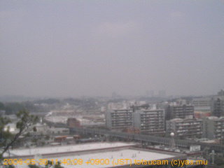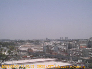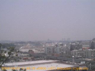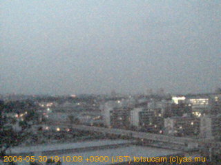 適度に曇った日の雲の動き (例: 2005-10-24) がとても楽しめます。 正面を横切っている高架は横須賀線下りです。 その下に横須賀線上り、東海道線、同貨物線が走っていますが、 高架に隠れていてよく見えません。 夜間は特に中央左寄りの車の動きがよく見えます。
