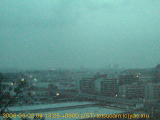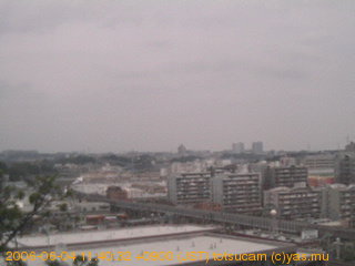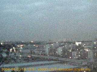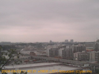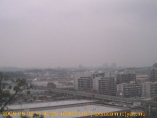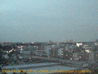 適度に曇った日の雲の動き (例: 2005-10-24) がとても楽しめます。 正面を横切っている高架は横須賀線下りです。 その下に横須賀線上り、東海道線、同貨物線が走っていますが、 高架に隠れていてよく見えません。 夜間は特に中央左寄りの車の動きがよく見えます。