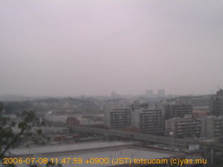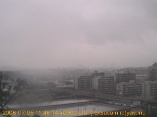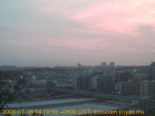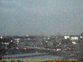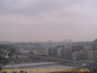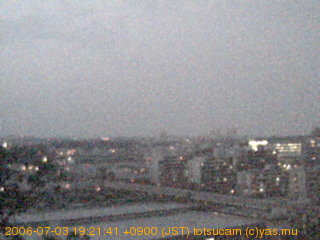 適度に曇った日の雲の動き (例: 2005-10-24) がとても楽しめます。 正面を横切っている高架は横須賀線下りです。 その下に横須賀線上り、東海道線、同貨物線が走っていますが、 高架に隠れていてよく見えません。 夜間は特に中央左寄りの車の動きがよく見えます。