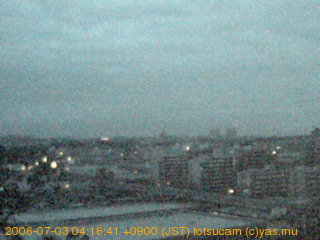 横浜市戸塚駅周辺から 東戸塚方面(北北東)を望む展望カメラの映像です。 左は現在の映像です。 下に並んでいるのは、 7日間に亘る日の出どき、昼間、夕暮れどきの写真(サムネイル)です。 それぞれ、日の出15分前、南中時、日没20分後の写真となっています。 各写真の下にはmpeg形式の動画へのリンクがあります。 それぞれ、日の出、南中、日没の前後1時間の画像です。 右欄にはその日24時間の動画へのリンクがあります。 この7日間以外は日付が一覧表示されています。 日付部分をクリックすると、 その日付から7日分が展開されて表示されます。
