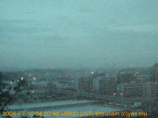 横浜市戸塚駅周辺から 東戸塚方面(北北東)を望む展望カメラの映像です。 左は現在の映像です。 下に並んでいるのは、 7日間に亘る日の出どき、昼間、夕暮れどきの写真(サムネイル)です。 それぞれ、日の出15分前、南中時、日没20分後の写真となっています。 各写真の下にはmpeg形式の動画へのリンクがあります。 それぞれ、日の出、南中、日没の前後1時間の画像です。 右欄にはその日24時間の動画へのリンクがあります。 この7日間以外は日付が一覧表示されています。 日付部分をクリックすると、 その日付から7日分が展開されて表示されます。