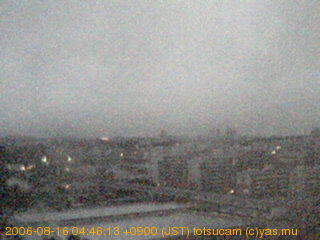 横浜市戸塚駅周辺から 東戸塚方面(北北東)を望む展望カメラの映像です。 左は現在の映像です。 下に並んでいるのは、 7日間に亘る日の出どき、昼間、夕暮れどきの写真(サムネイル)です。 それぞれ、日の出15分前、南中時、日没20分後の写真となっています。 各写真の下にはmpeg形式の動画へのリンクがあります。 それぞれ、日の出、南中、日没の前後1時間の画像です。 右欄にはその日24時間の動画へのリンクがあります。 この7日間以外は日付が一覧表示されています。 日付部分をクリックすると、 その日付から7日分が展開されて表示されます。