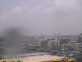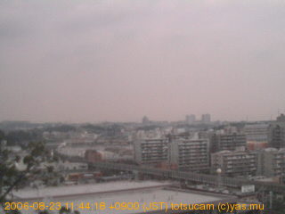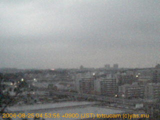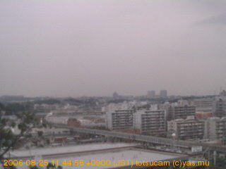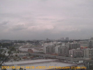 適度に曇った日の雲の動き (例: 2005-10-24) がとても楽しめます。 正面を横切っている高架は横須賀線下りです。 その下に横須賀線上り、東海道線、同貨物線が走っていますが、 高架に隠れていてよく見えません。 夜間は特に中央左寄りの車の動きがよく見えます。