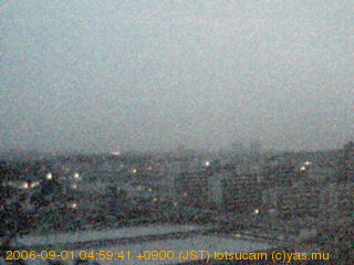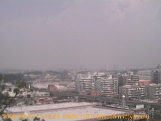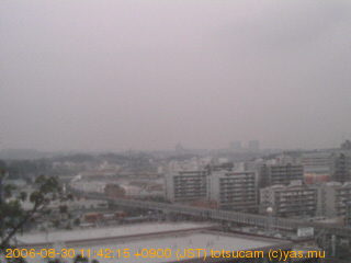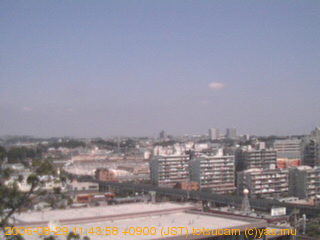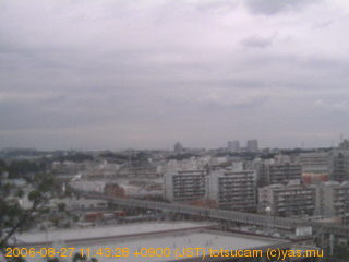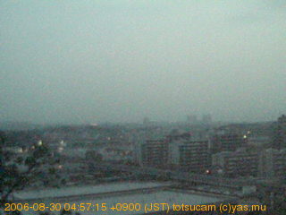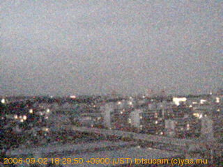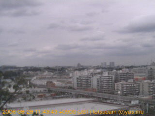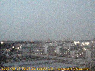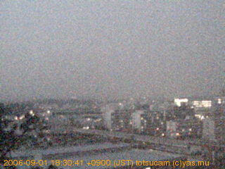適度に曇った日の雲の動き (例: 2005-10-24) がとても楽しめます。 正面を横切っている高架は横須賀線下りです。 その下に横須賀線上り、東海道線、同貨物線が走っていますが、 高架に隠れていてよく見えません。 夜間は特に中央左寄りの車の動きがよく見えます。