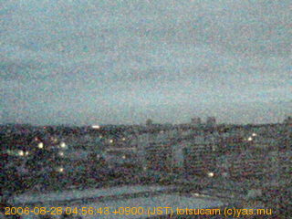 横浜市戸塚駅周辺から 東戸塚方面(北北東)を望む展望カメラの映像です。 左は現在の映像です。 下に並んでいるのは、 7日間に亘る日の出どき、昼間、夕暮れどきの写真(サムネイル)です。 それぞれ、日の出15分前、南中時、日没20分後の写真となっています。 各写真の下にはmpeg形式の動画へのリンクがあります。 それぞれ、日の出、南中、日没の前後1時間の画像です。 右欄にはその日24時間の動画へのリンクがあります。 この7日間以外は日付が一覧表示されています。 日付部分をクリックすると、 その日付から7日分が展開されて表示されます。