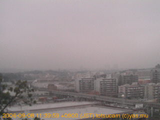適度に曇った日の雲の動き (例: 2005-10-24) がとても楽しめます。 正面を横切っている高架は横須賀線下りです。 その下に横須賀線上り、東海道線、同貨物線が走っていますが、 高架に隠れていてよく見えません。 夜間は特に中央左寄りの車の動きがよく見えます。