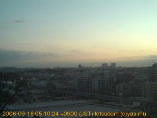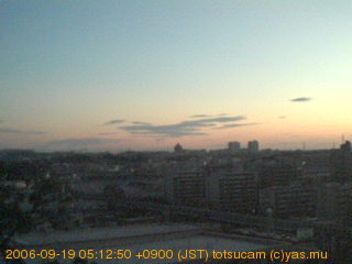 横浜市戸塚駅周辺から 東戸塚方面(北北東)を望む展望カメラの映像です。 左は現在の映像です。 下に並んでいるのは、 7日間に亘る日の出どき、昼間、夕暮れどきの写真(サムネイル)です。 それぞれ、日の出15分前、南中時、日没20分後の写真となっています。 各写真の下にはmpeg形式の動画へのリンクがあります。 それぞれ、日の出、南中、日没の前後1時間の画像です。 右欄にはその日24時間の動画へのリンクがあります。 この7日間以外は日付が一覧表示されています。 日付部分をクリックすると、 その日付から7日分が展開されて表示されます。