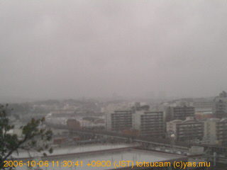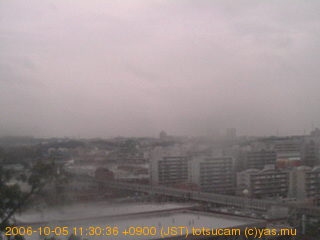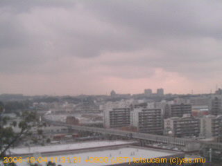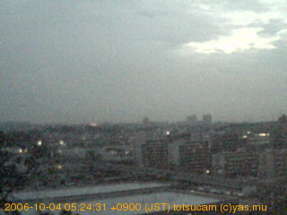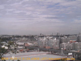適度に曇った日の雲の動き (例: 2005-10-24) がとても楽しめます。 正面を横切っている高架は横須賀線下りです。 その下に横須賀線上り、東海道線、同貨物線が走っていますが、 高架に隠れていてよく見えません。 夜間は特に中央左寄りの車の動きがよく見えます。