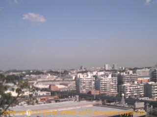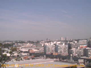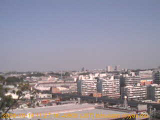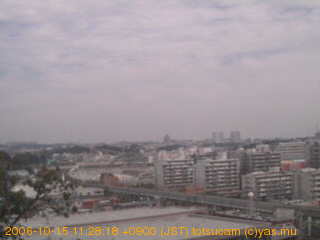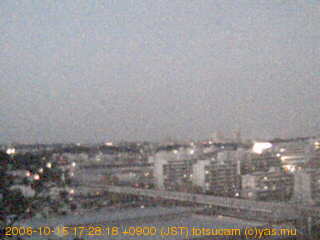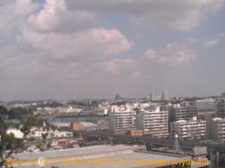 適度に曇った日の雲の動き (例: 2005-10-24) がとても楽しめます。 正面を横切っている高架は横須賀線下りです。 その下に横須賀線上り、東海道線、同貨物線が走っていますが、 高架に隠れていてよく見えません。 夜間は特に中央左寄りの車の動きがよく見えます。