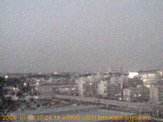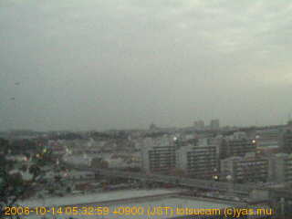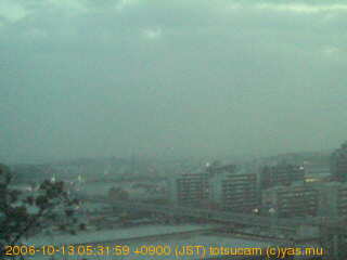 横浜市戸塚駅周辺から 東戸塚方面(北北東)を望む展望カメラの映像です。 左は現在の映像です。 下に並んでいるのは、 7日間に亘る日の出どき、昼間、夕暮れどきの写真(サムネイル)です。 それぞれ、日の出15分前、南中時、日没20分後の写真となっています。 各写真の下にはmpeg形式の動画へのリンクがあります。 それぞれ、日の出、南中、日没の前後1時間の画像です。 右欄にはその日24時間の動画へのリンクがあります。 この7日間以外は日付が一覧表示されています。 日付部分をクリックすると、 その日付から7日分が展開されて表示されます。