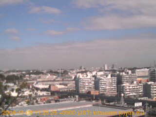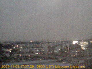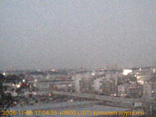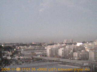 適度に曇った日の雲の動き (例: 2005-10-24) がとても楽しめます。 正面を横切っている高架は横須賀線下りです。 その下に横須賀線上り、東海道線、同貨物線が走っていますが、 高架に隠れていてよく見えません。 夜間は特に中央左寄りの車の動きがよく見えます。