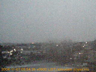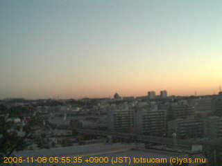 横浜市戸塚駅周辺から 東戸塚方面(北北東)を望む展望カメラの映像です。 左は現在の映像です。 下に並んでいるのは、 7日間に亘る日の出どき、昼間、夕暮れどきの写真(サムネイル)です。 それぞれ、日の出15分前、南中時、日没20分後の写真となっています。 各写真の下にはmpeg形式の動画へのリンクがあります。 それぞれ、日の出、南中、日没の前後1時間の画像です。 右欄にはその日24時間の動画へのリンクがあります。 この7日間以外は日付が一覧表示されています。 日付部分をクリックすると、 その日付から7日分が展開されて表示されます。