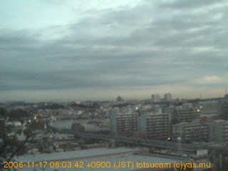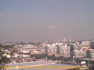 適度に曇った日の雲の動き (例: 2005-10-24) がとても楽しめます。 正面を横切っている高架は横須賀線下りです。 その下に横須賀線上り、東海道線、同貨物線が走っていますが、 高架に隠れていてよく見えません。 夜間は特に中央左寄りの車の動きがよく見えます。