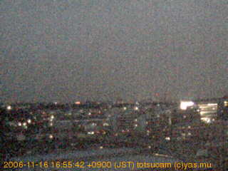 横浜市戸塚駅周辺から 東戸塚方面(北北東)を望む展望カメラの映像です。 左は現在の映像です。 下に並んでいるのは、 7日間に亘る日の出どき、昼間、夕暮れどきの写真(サムネイル)です。 それぞれ、日の出15分前、南中時、日没20分後の写真となっています。 各写真の下にはmpeg形式の動画へのリンクがあります。 それぞれ、日の出、南中、日没の前後1時間の画像です。 右欄にはその日24時間の動画へのリンクがあります。 この7日間以外は日付が一覧表示されています。 日付部分をクリックすると、 その日付から7日分が展開されて表示されます。
