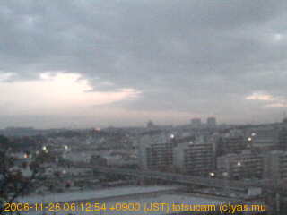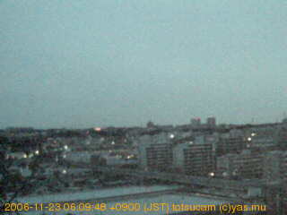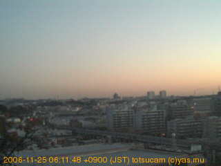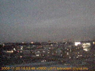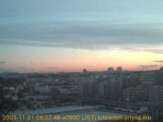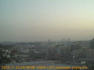 横浜市戸塚駅周辺から 東戸塚方面(北北東)を望む展望カメラの映像です。 左は現在の映像です。 下に並んでいるのは、 7日間に亘る日の出どき、昼間、夕暮れどきの写真(サムネイル)です。 それぞれ、日の出15分前、南中時、日没20分後の写真となっています。 各写真の下にはmpeg形式の動画へのリンクがあります。 それぞれ、日の出、南中、日没の前後1時間の画像です。 右欄にはその日24時間の動画へのリンクがあります。 この7日間以外は日付が一覧表示されています。 日付部分をクリックすると、 その日付から7日分が展開されて表示されます。
